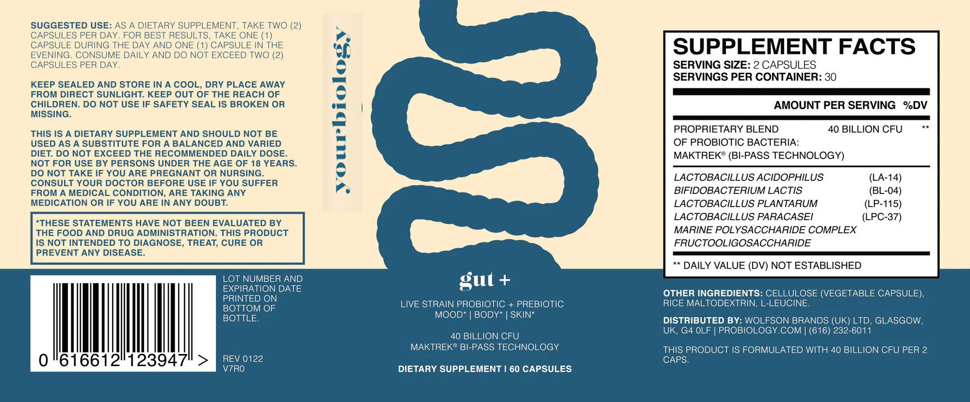 With that said, if you are unhappy with gut+ for any reason, you may return your order within 60 days of purchase for a full refund.